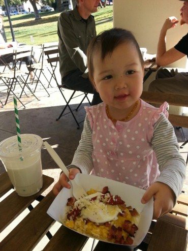 Cheddar grits with poached egg and bacon at the echo lake boathouse Sent from my phone. Please excuse brevity and typos.
