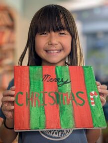 Margot is very excited to decorate for Christmas. Yesterday she decided to take a plain white ceramic dinosaur and make him into Santasaurus. The wings are so he can go help deliver presents.