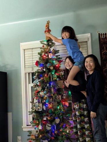 As our ornament collection has grown we’ve retired all the plain shiny ball types. Our tree is bigger too, and still it’s very crowded with ornaments. But we’ve kept the cheap felt reindeer.