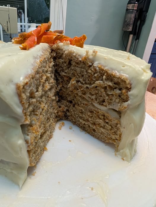 Hazel made the fluffiest lightest best cake I’ve had in the nearly 20 years I’ve been eating gluten free. Was delicious and you absolutely could have served it without mentioning the gf part and no one would have ever suspected. Really good, and carrot cake is my favorite so I really enjoyed it.