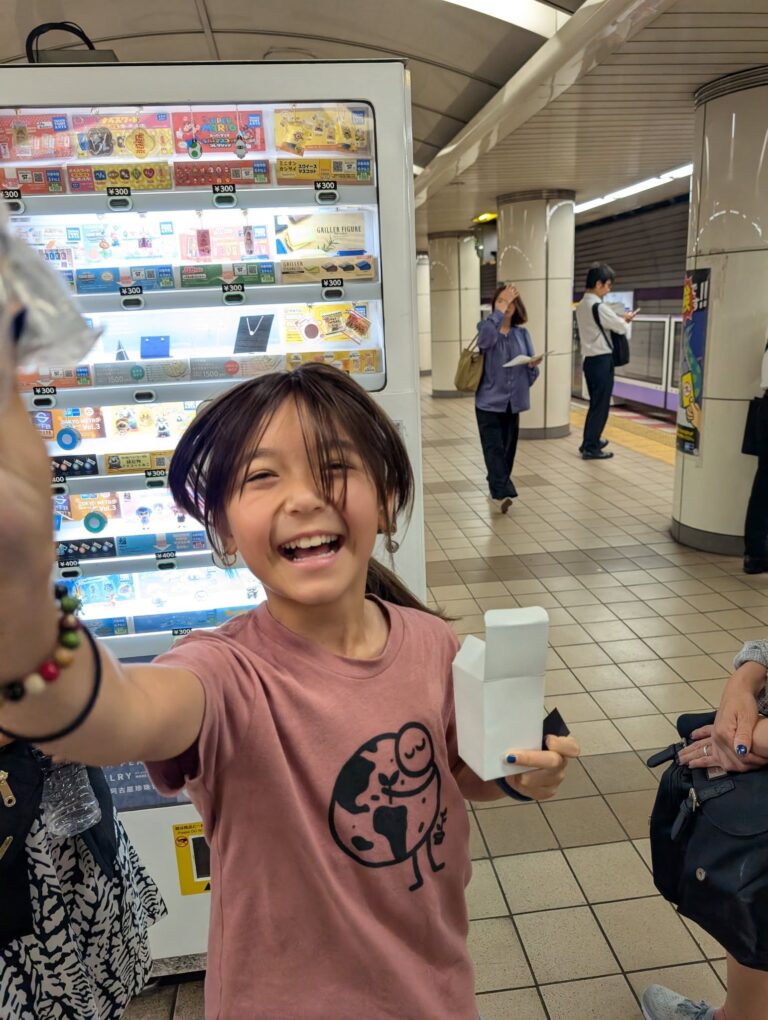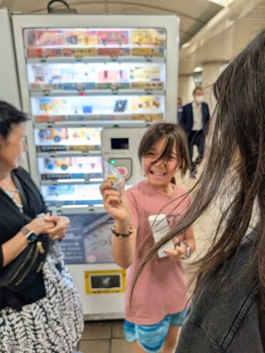 There are drink vending machines everywhere in Japan. Even in some surprisingly out of the way spots. But fewer ” odd” vending machines than I expected. Margot was excited to get the toy she wanted (1/4 odds) at a train station vending machine.