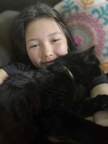 Introducing MuMu.Last September Margot and I returned from a soccer practice to be greated by a cat. He was not like the normal feral cats we see, he was rubbing our legs and being very affectionate. Very pet-like so we let him in the house