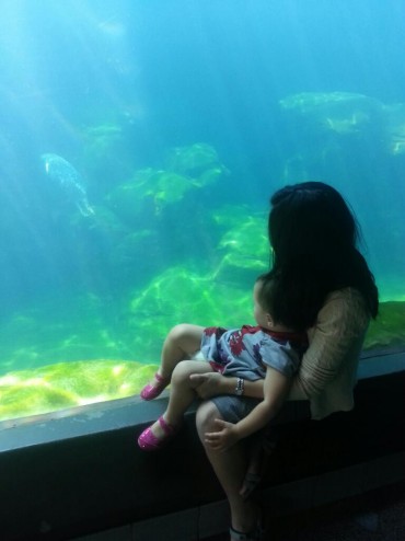 Hazel is enjoying the aquarium. [attach 1]