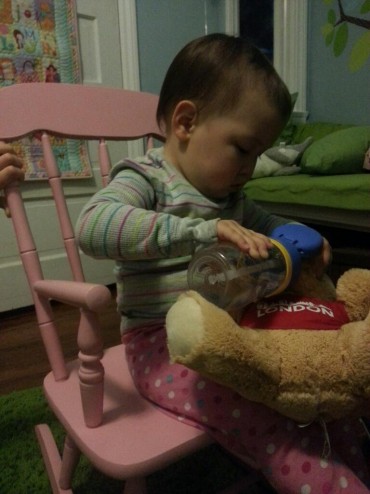 Giving London bear water before bed