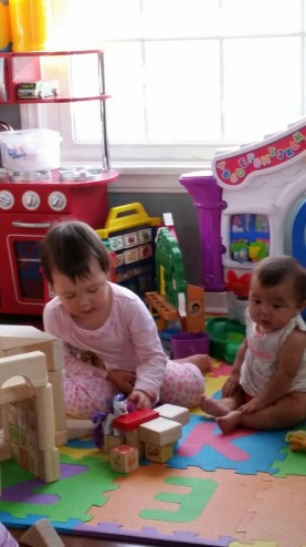 Playing my little pony and blocks. Hazel made me make a house, but she made the table and chairs