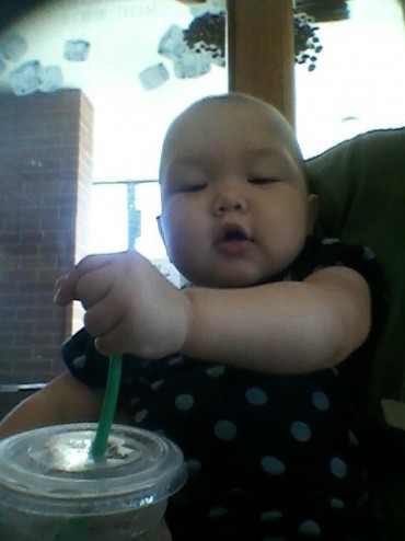So we stopped at starbucks. But she didn’t want the bottle, but I’d happily sitting on my lap