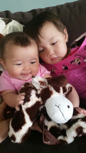 Margot likes her giraffe lovey.
