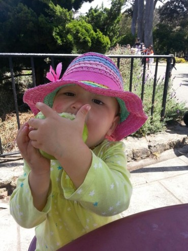 We’re at the Santa Cruz surf contest, and Hazel keeps saying something that sounds very much like "I’m a taco!". Very excited, and with a big grin. No idea what it means, but it keeps making me laugh.“I’m a taco"