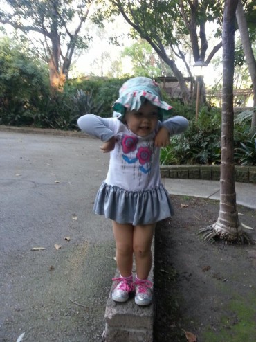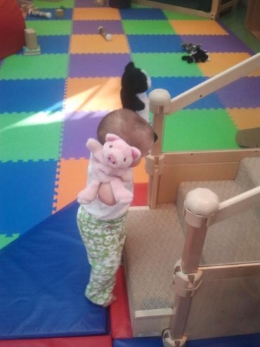 Hazel wanted to walk on the wall with "nooooooo help" When she got to the end, she was thrilled and yelled "Daredevil!!"