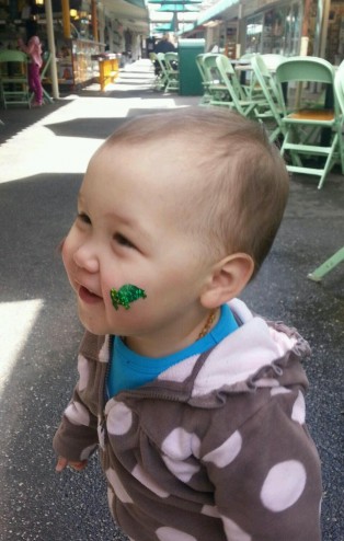Very excited about the “turdle” sticker’s. There were hundreds of stickers, but I asked Hazel which she wanted, and she picked out turtles.