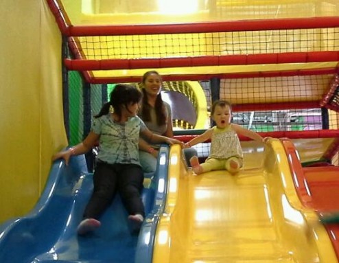 Hazel has made a little friend today, who is being awesome and playing with her and taking her down the slides. I asked hazel if she wanted me to go with her, and she said "no, I want to go with my big kid friend"