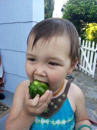 Hazel really likes bell peppers from the garden. She just ate two straight from the plant.