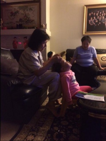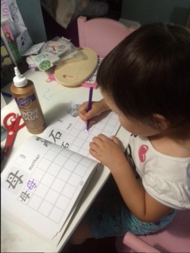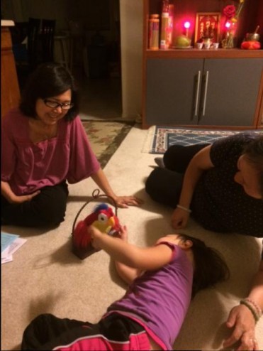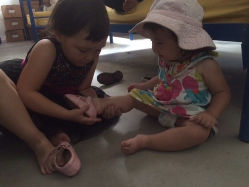 Hazel and Popo playing Hair Salon, at Hazel’s suggestion