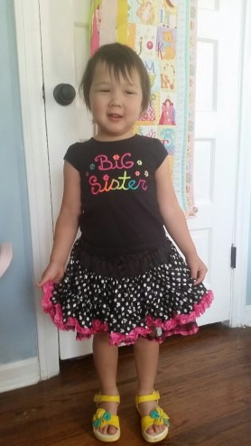 Hazel was very proud that everything matched. The skirt even had little Minnie silhouettes…