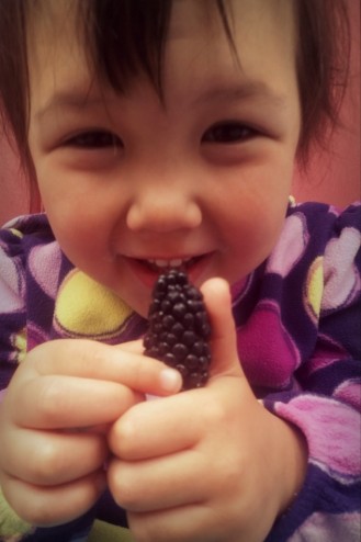 Hazel was amazed by the big blackberries. "It’s as big as my thumb!"