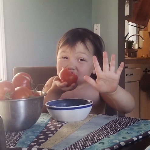 "Hazel, how many tomatoes have you eaten?!? " She eats them like apples…
