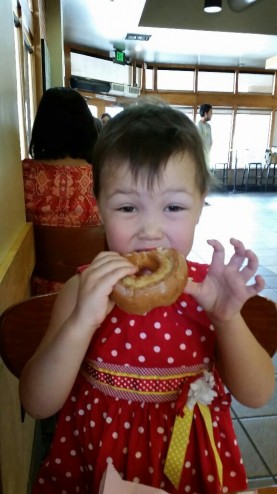 We walked past a place seeking buns, and Hazel decided she wanted one for lunch.