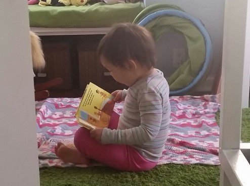 Hazel just sat in her room and "read" three books to herself. I know she’s not reading them really yet, but her ability to recall is impressive. She gets the vast majority of the book correct.