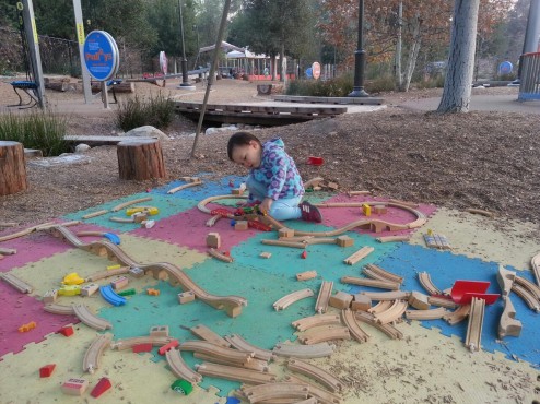 So we could play with the toy trains identical to the one we have at home. In our living room.