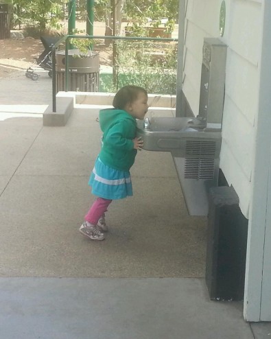 To learn she could reach the water fountain all by herself. She is now very, very well hydrated