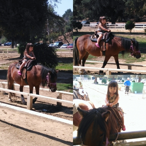 She looked a little uncertain on the horse, but after she said "Me like maa (horses). More daddy, more"