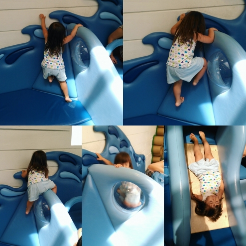 Margot wailed when Kidspace was closed. She loves it there. Recovered quickly at the playground