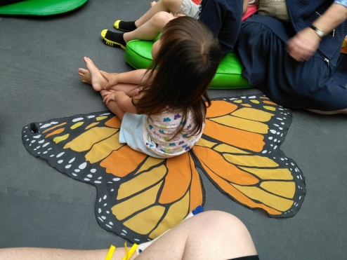 Margot spent most of story time neatly arranging the butterfly neatly to sit on