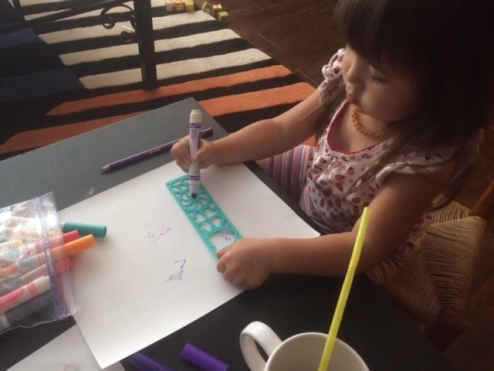 It had been quiet for awhile, so I went and checked on Margot. She was quietly making a mess peeling paper of crayons, one of her favorite hobbies.