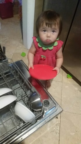 Margot is “helping” unload the dishwasher