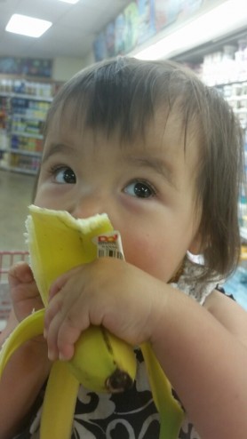 Margot signed for food and pointed at the bananas