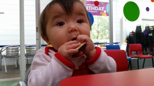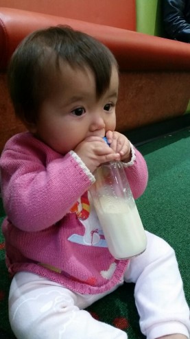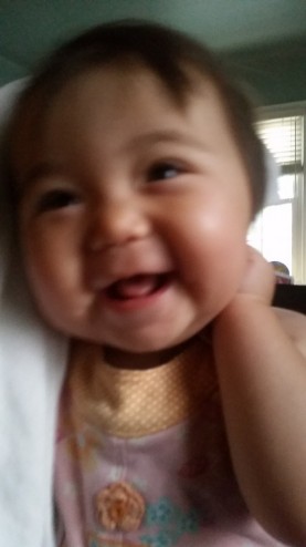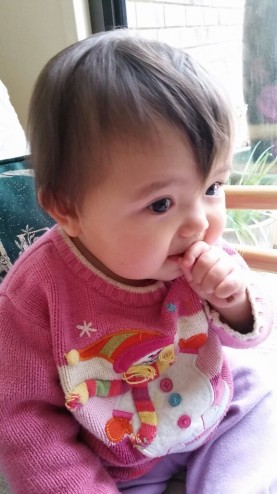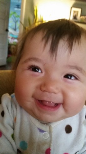 Margot can drink from a straw. And she’s got her first tooth coming in.