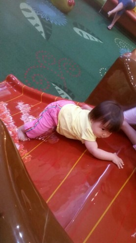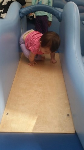 Margot had slid down the slide on her belly once today. On her second time climbing up, I figured I’d get a picture…it didn’t go so well.