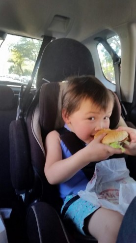 Margot fell asleep in car, so I wanted to let her sleep. Went through Wendy’s drive through