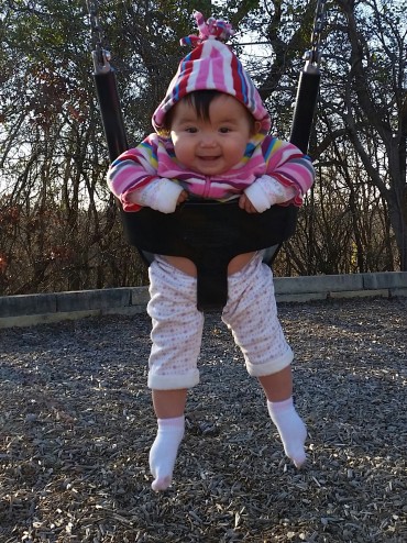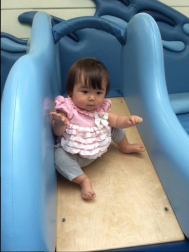 Margot had slid down the slide on her belly once today. On her second time climbing up, I figured I’d get a picture…it didn’t go so well.