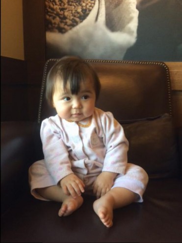 Margot woke up @5:45 this morning. Happy and WIDE awake. I have her a bottle, but she wasn’t interested. Changed her diaper. Kim and Hazel were still sleeping, so around 6:30 I took Margot to starbucks. She promptly fell asleep leaning against my cheek.