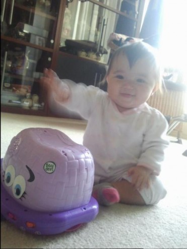 Margot has discovered the "drop toys on the ground and cry until someone picks it up" game.