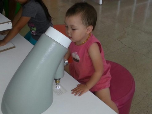 More pictures. Hazel loved the octopus today, and matching the butterfly dominoes. On Nov 20, 2013 12:55 PM, "Geoff Jennings" <g> wrote: It’s still early, and we’ve already used a lever to lift a truck, driven a hovercraft simulator, used lights to race solar cars, and raced wheels with different weight distributions down a ramp.