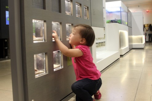 We rode the train to downtown, visited Kim at work, and then to the museums. Hazel had made butterfly wings and antennae at Kidspace a day or two earlier, and wanted to wear it on the trip.